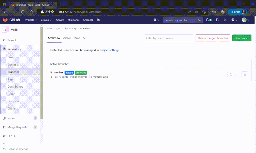 除了差10个左右索引,其他都正常。这时候把GitLab数据库指向到这个新库,启动程序看能否打开页面: